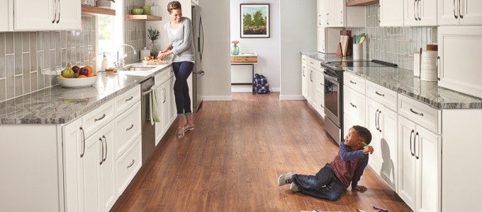 rnEasy to clean building materials — especially for the countertops and flooring — are a must-have in family-friendly kitchens. Quartz, vinyl and laminate countertops are all easy to maintain and stand up well to the chaos of family mealtime.