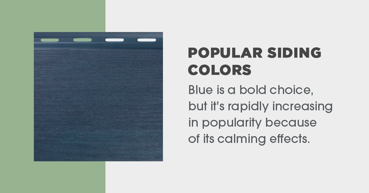 Choosing new siding for your home is a big investment. In addition to the cost, siding is an investment in your home’s appearance for years to come. It’s the first thing people see when they arrive at your home, and it’s the first thing you’ll see every time you come home after a weekend trip or late night at the office. The right siding color can make or break your home’s curb appeal — and it can make or break your own feelings about your home.